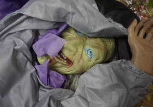 Her eerie glowing presence, twisted grin and red glowing eyes are sure to send shivers down trick-or-treaters' spines.